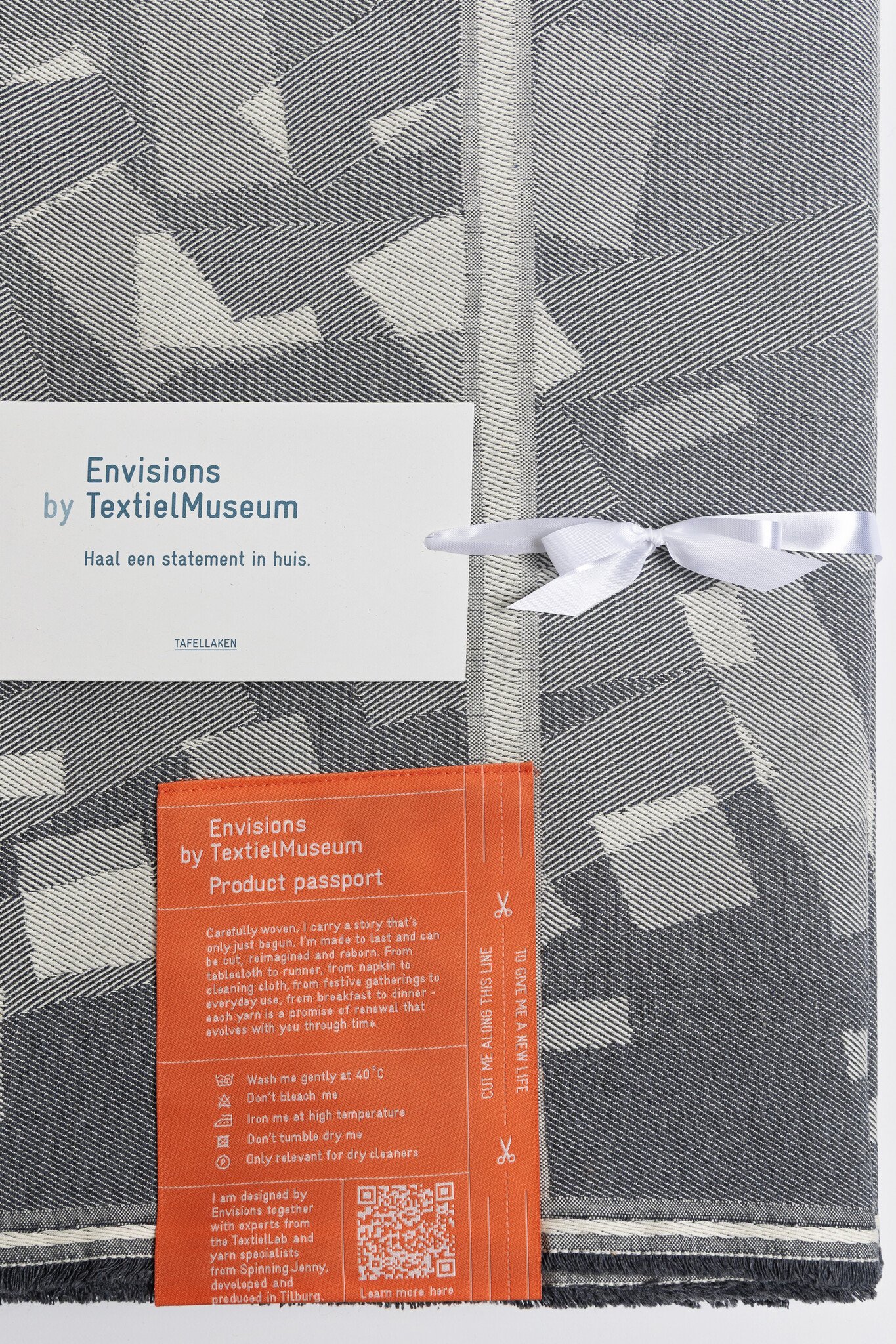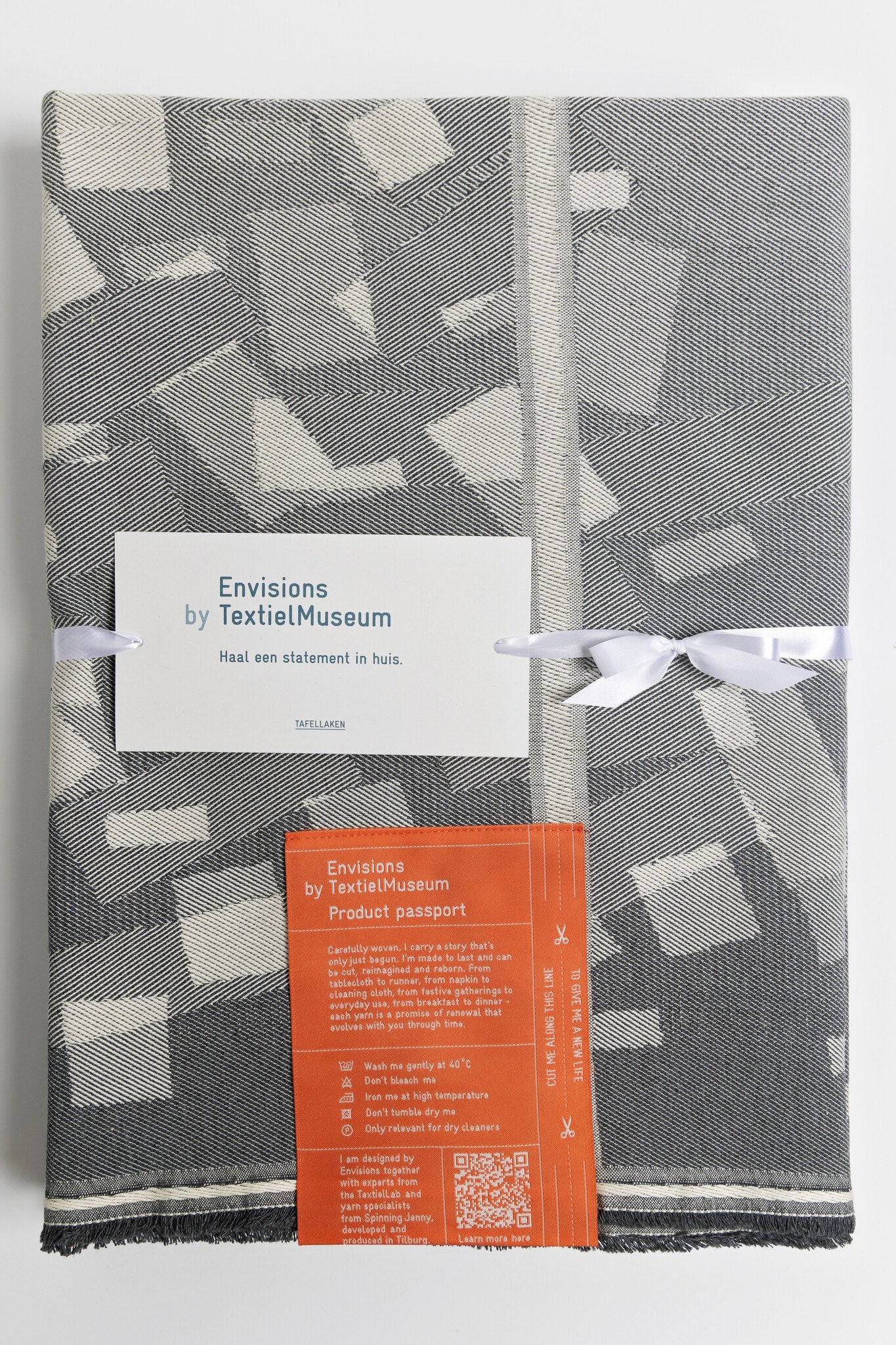 Het Re_Work-tafelgoed – en binnenkort alle by TextielMuseum-producten die het TextielLab verlaten – is voorzien van een productpaspoort. Dit paspoort sluit aan bij de aankomende EU-wetgeving rondom het gebruik van materialen en de transparantie over hun herkomst.