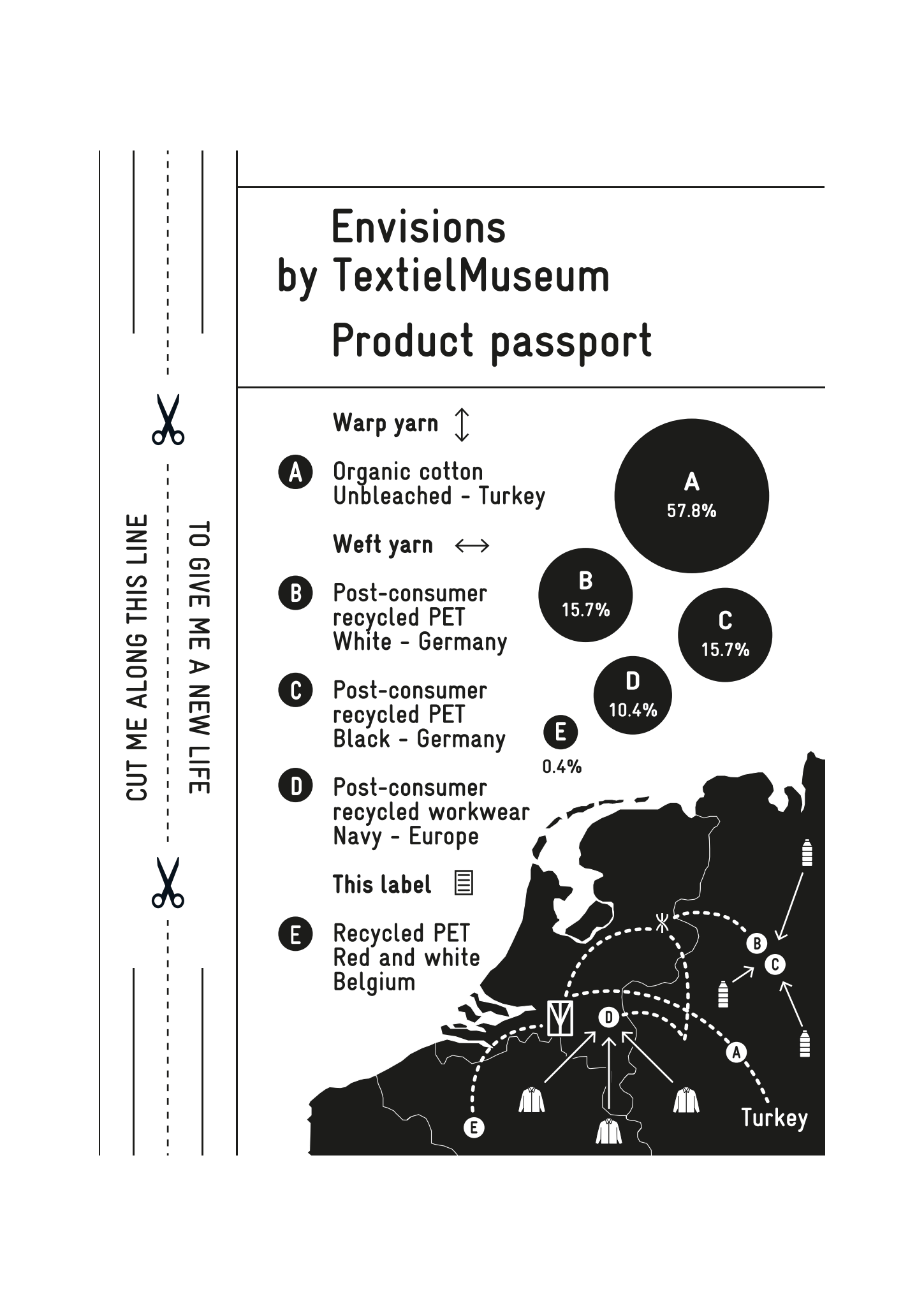 Het Re_Work-tafelgoed – en binnenkort alle by TextielMuseum-producten die het TextielLab verlaten – is voorzien van een productpaspoort. Dit paspoort sluit aan bij de aankomende EU-wetgeving rondom het gebruik van materialen en de transparantie over hun herkomst.